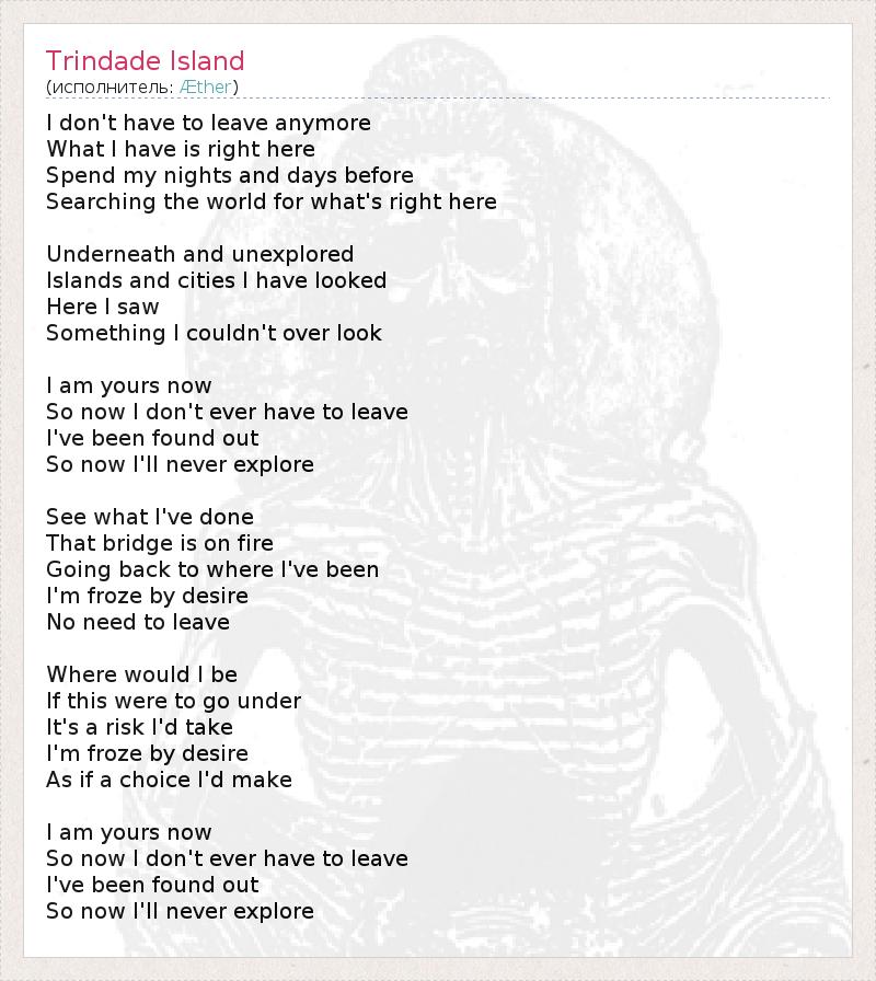 А как ты думаешь, о чем песня "Trindade Island" ?