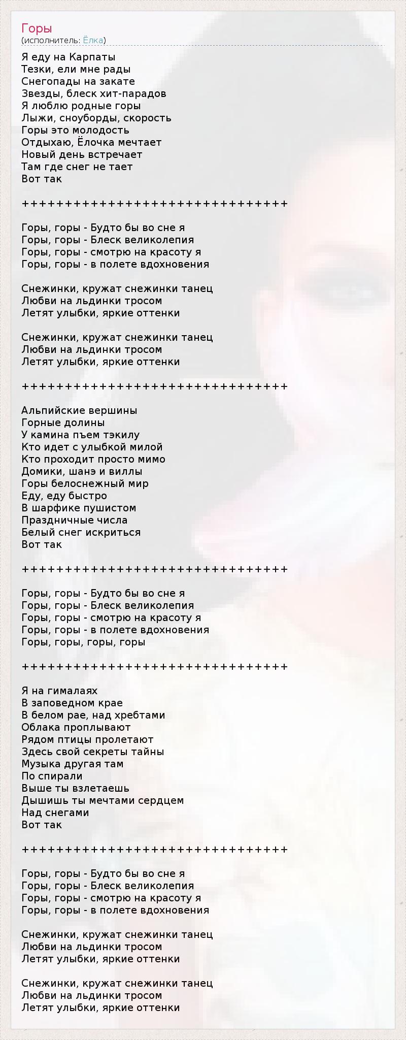 Это интересно:Елизаве́та Вальдема́ровна Ива́нцив (укр. Єлизавета Вальдемарівна Іванців), известная как Ёлка; 2 июля 1982, Ужгород, Украинская ССР, СССР) — украинская певица. Бывшая участница ужгородской команды КВН «Палата № 6».Начала музыкальную карьеру в составе ужгородской группы B&B. В 2004 году подписала контракт с Владом Валовым и выпустила успешный дебютный альбом «Город обмана», с хитами «Девочка... продолжение