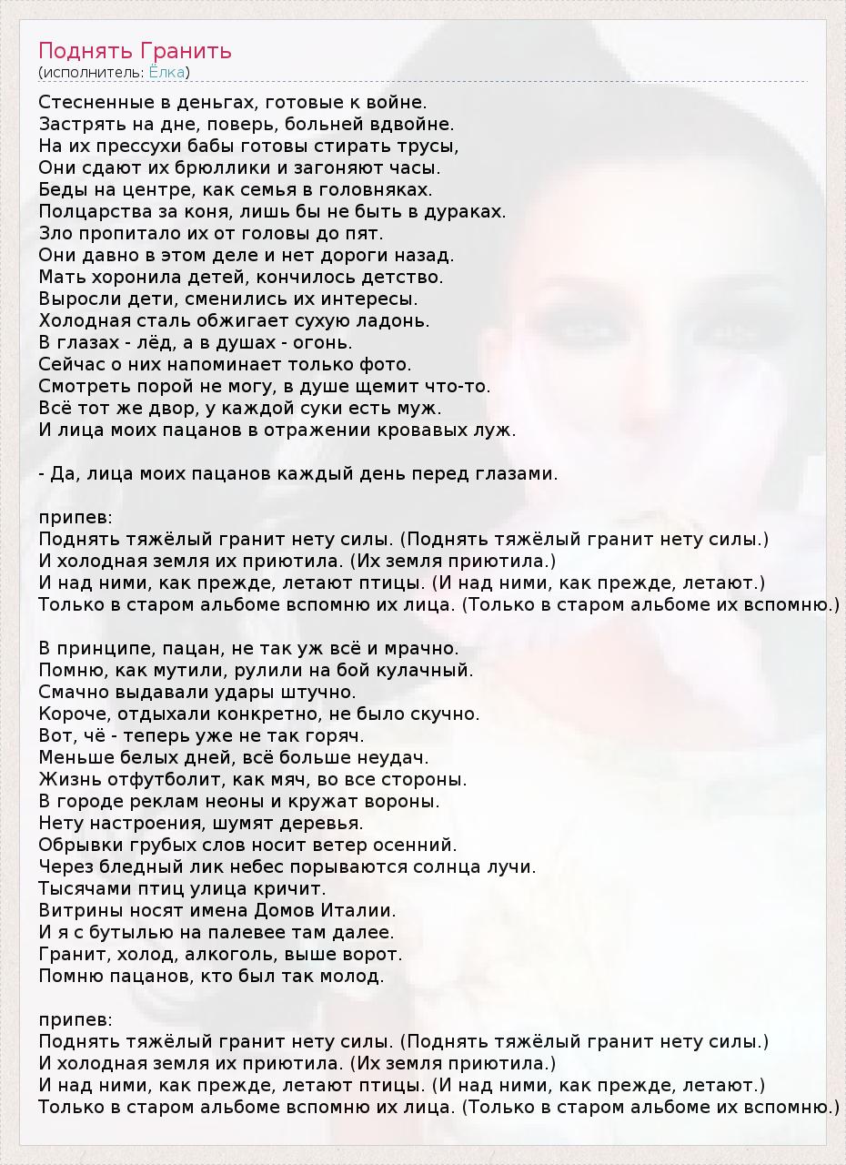 ГлавнаяИсполнителиЁлкаПоднять Гранить