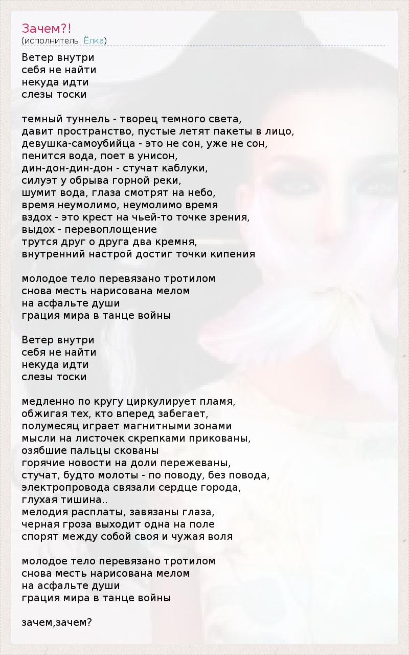 А как ты думаешь, о чем песня "Зачем?!" ?