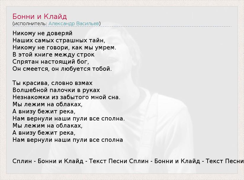 Сплин - Бонни и Клайд - Текст Песни Сплин - Бонни и Клайд - Текст Песни