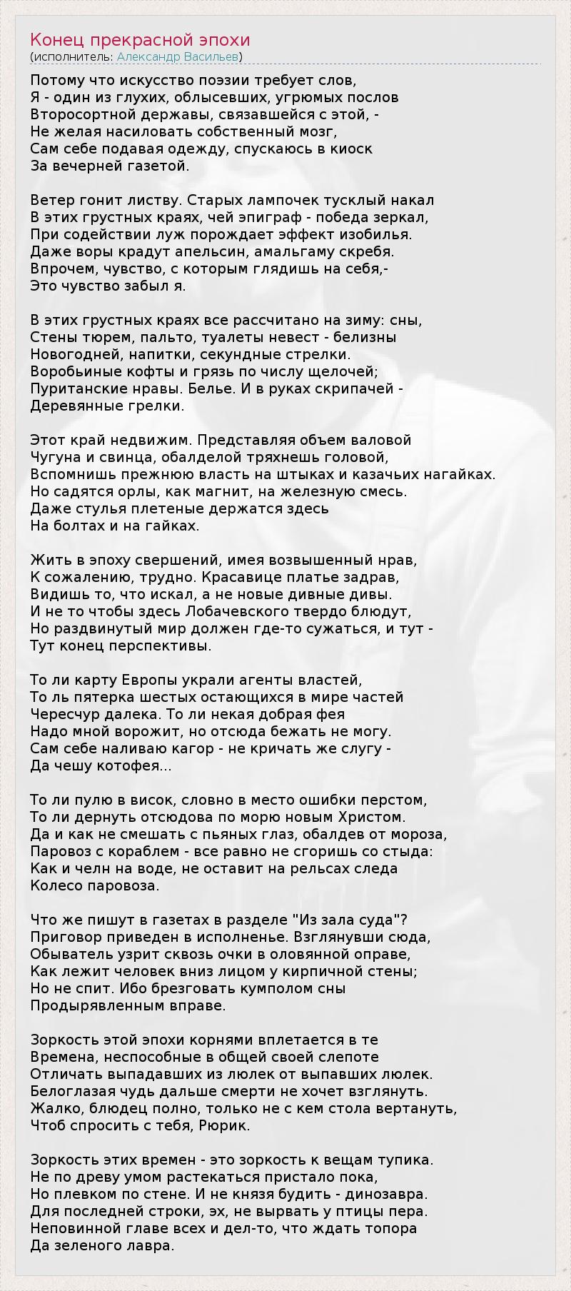 ГлавнаяИсполнителиАлександр ВасильевКонец прекрасной эпохи