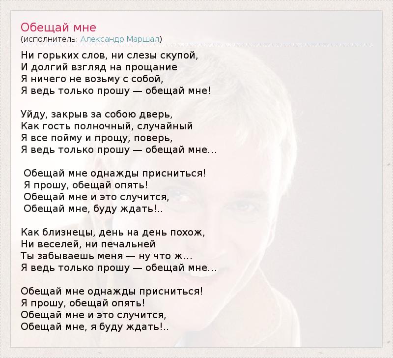 А как ты думаешь, о чем песня "Обещай мне" ?
