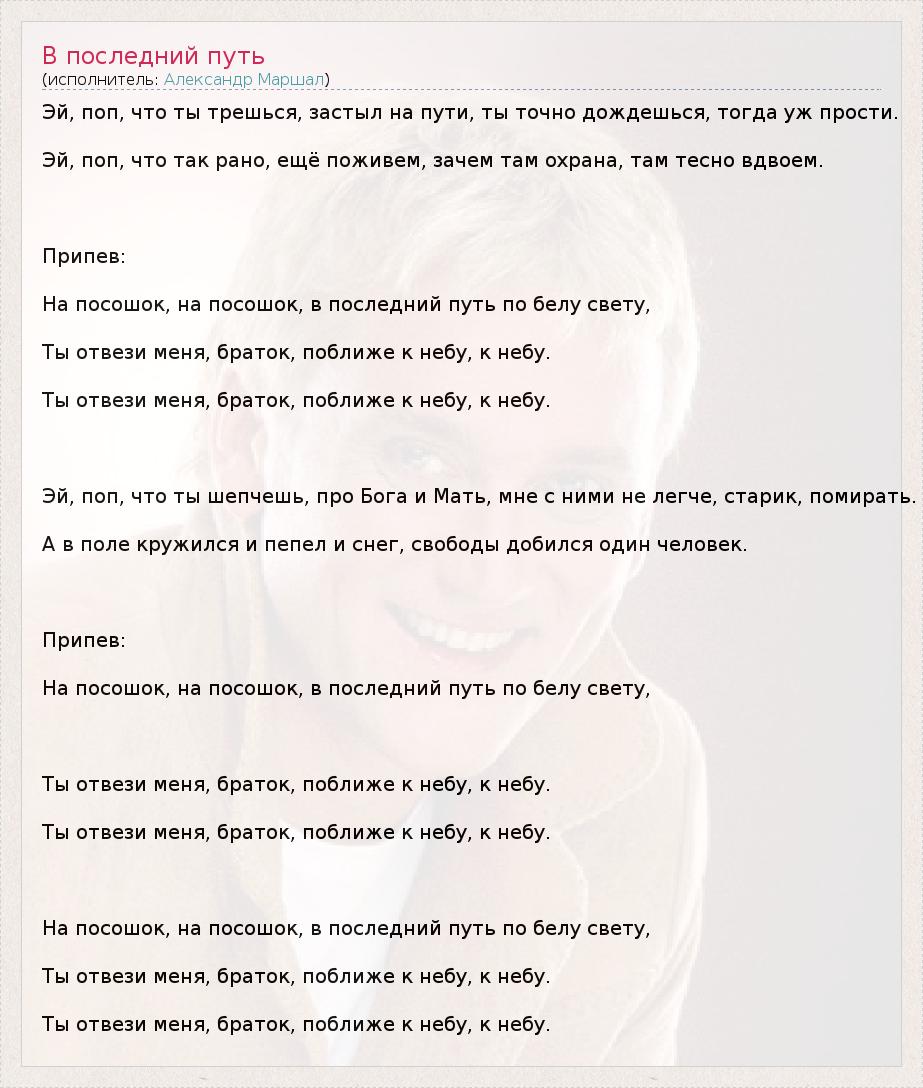 Эй, поп, что ты шепчешь, про Бога и Мать, мне с ними не легче, старик, помирать.