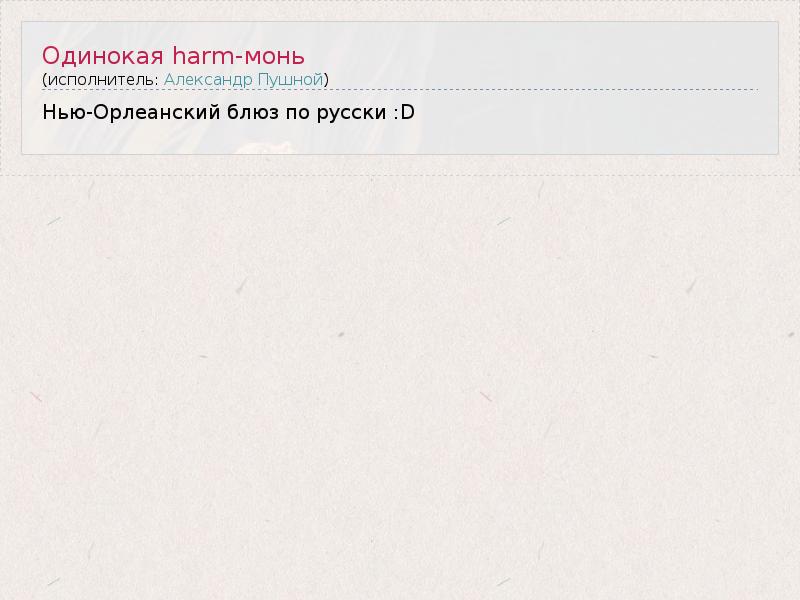 А как ты думаешь, о чем песня "Одинокая harm-монь" ?