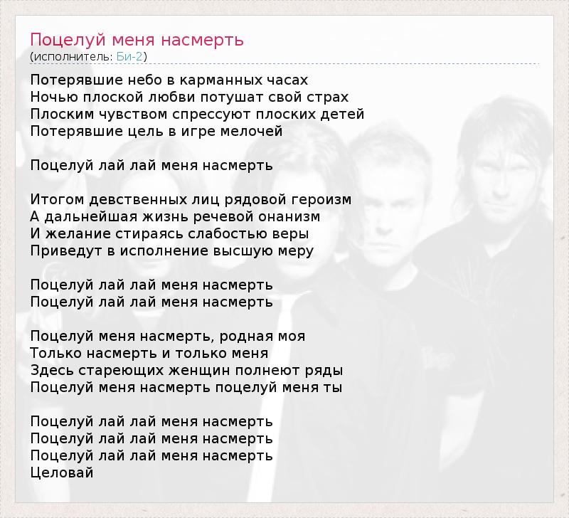 ГлавнаяИсполнителиБи-2Поцелуй меня насмерть