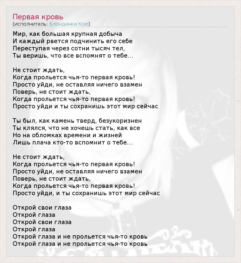 А как ты думаешь, о чем песня "Первая кровь" ?