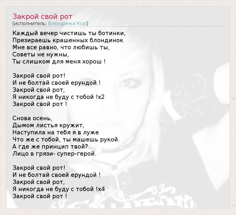 А как ты думаешь, о чем песня "Закрой свой рот" ?