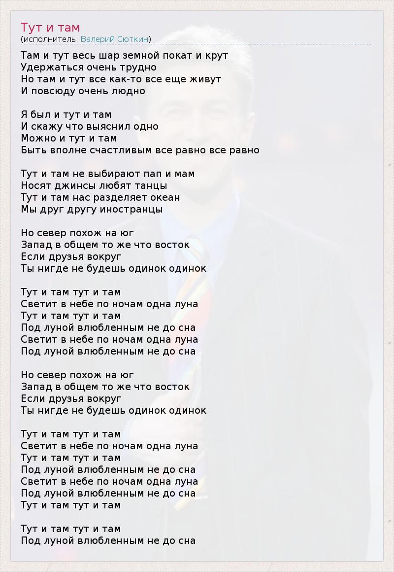 Это интересно:Валерий Сюткин родился 22 марта 1958 года в Москве. Музыкой начал заниматься в начале 70-х годов, участвуя сразу в нескольких любительских группах в качестве бас-гитариста или барабанщика. Играя в школьных ансамблях, исполнял песни Beatles, Grand Funk Railroad, Deep Purple, Led Zeppelin, Slade, Smokie.Однажды заменил заболевшего вокалиста, после чего в этой роли и остался. В 1982 году начал работать с группой «Телефон»,... продолжение