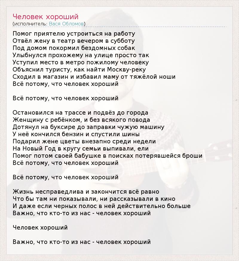 А как ты думаешь, о чем песня "Человек хороший" ?