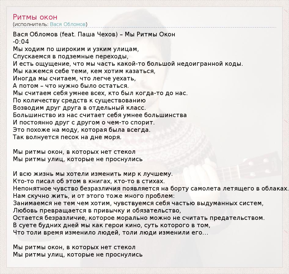 Вася Обломов (feat. Паша Чехов) – Мы Ритмы Окон