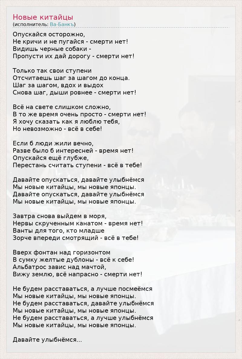 ГлавнаяИсполнителиВа-БанкъНовые китайцы