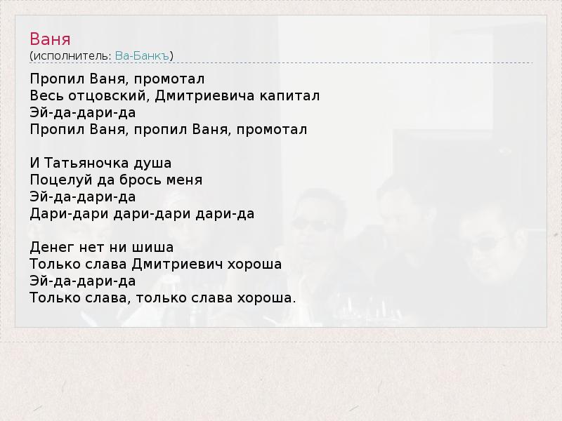 Это интересно:1986 год. Москва. Александр Ф. Скляр создаёт группу Ва-Банкъ. Первым был приглашён барабанщик Александр Маликов, который в своё время учился в легендарной 45-й школе, которую и закончил на несколько лет позже, чем А.Ф.С. Неизгладимое впечатление на юную легкоранимую неокрепшую душу пионера Маликова произвело выступление школьной группы “777”, созданной А.Ф.С. и Васей Шумовым и исполнявшей... продолжение