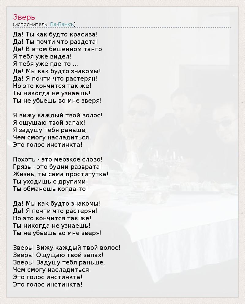 А как ты думаешь, о чем песня "Зверь" ?