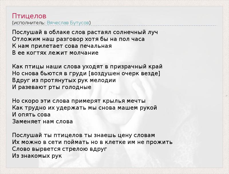 Послушай ты птицелов ты знаешь цену словам