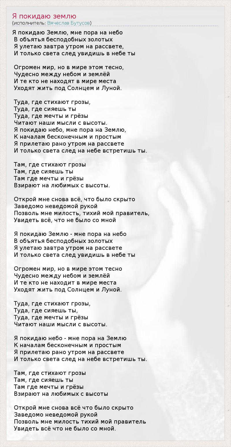 А как ты думаешь, о чем песня "Я покидаю землю" ?