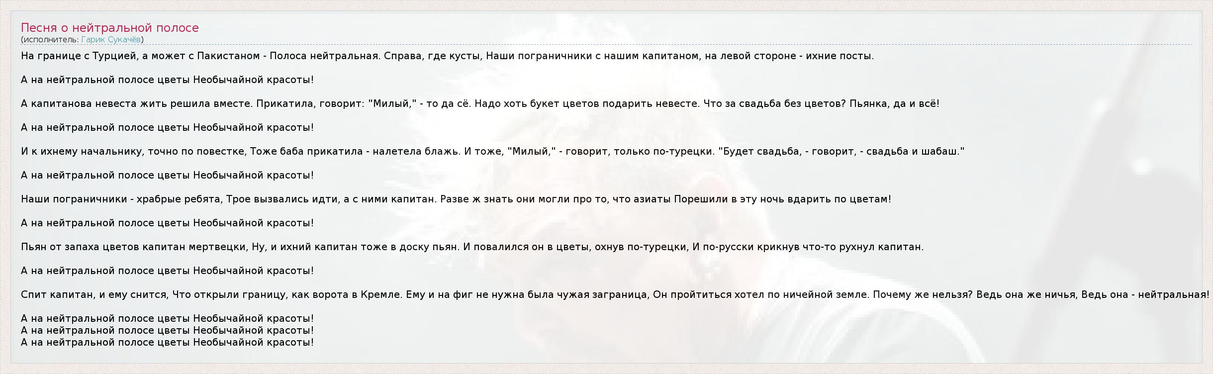 ГлавнаяИсполнителиГарик СукачёвПесня о нейтральной полосе