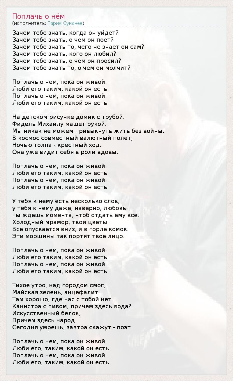 А как ты думаешь, о чем песня "Поплачь о нём" ?