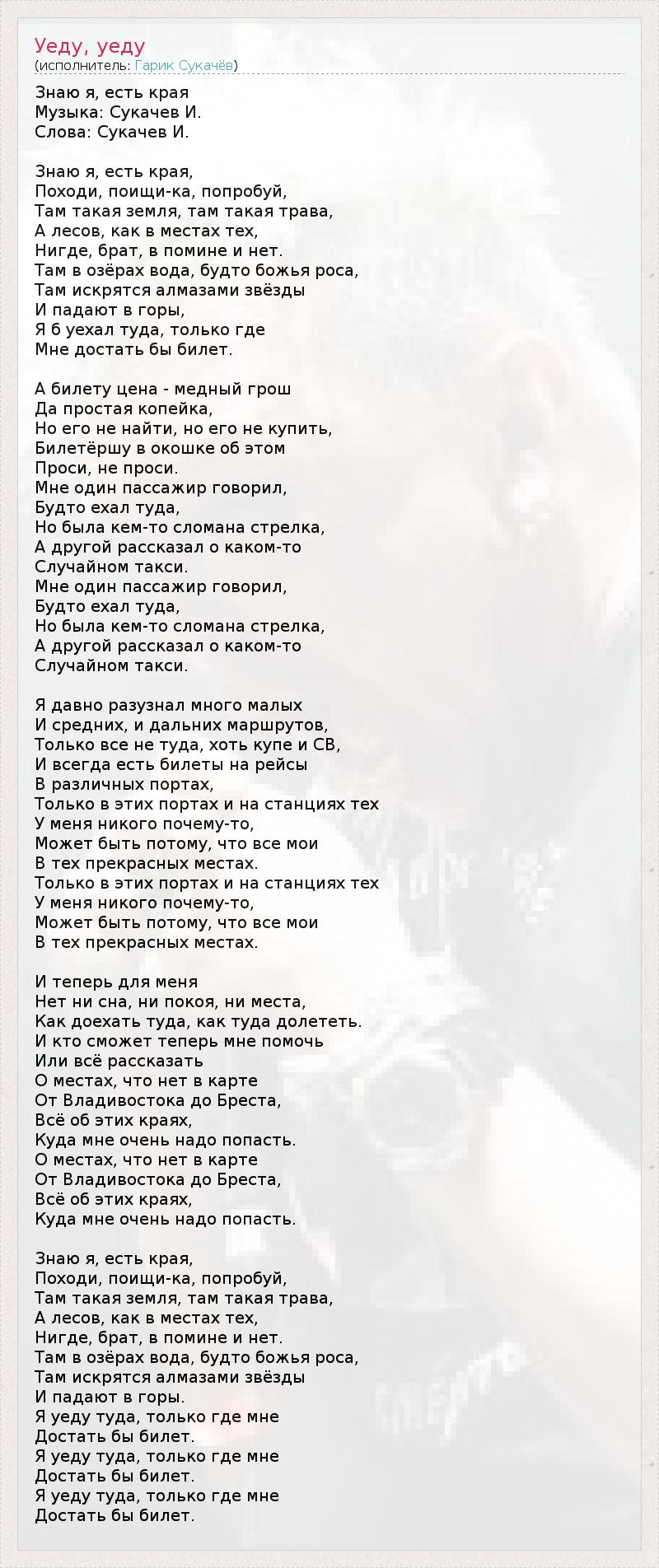 А как ты думаешь, о чем песня "Уеду, уеду" ?