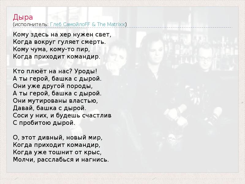 А как ты думаешь, о чем песня "Дыра" ?