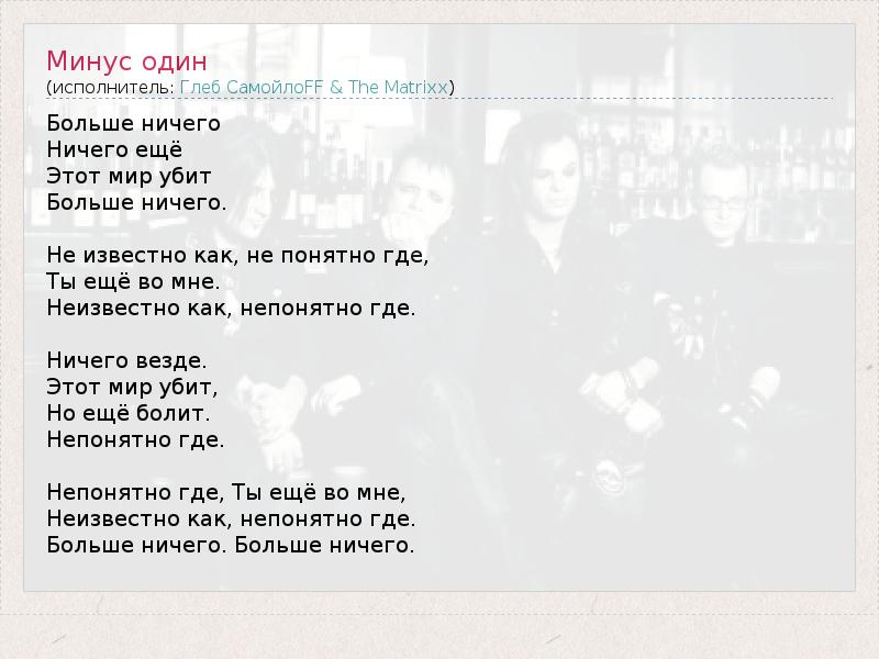 А как ты думаешь, о чем песня "Минус один" ?