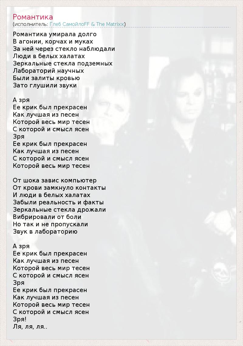 Это интересно:В 2009 г. Глеб Самойлов создал новую группу "ГЛЕБ САМОЙЛОFF & THE MATRIXX".C лета 2013 года название изменено на The Matrixx.Название это - новое, однако все четверо музыкантов прекрасно знакомы любителям русского рока. Начнем с Глеба Самойлова - вокалиста, гитариста, басиста, клавишника, поэта, композитора, одной из ключевых фигур в истории "Агаты" + Барабанщик Дмитрий... продолжение