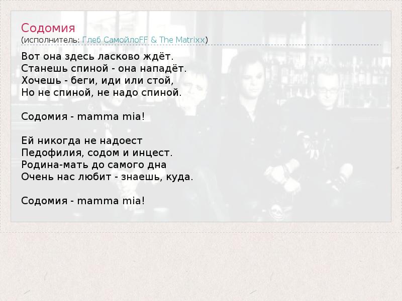 А как ты думаешь, о чем песня "Содомия" ?