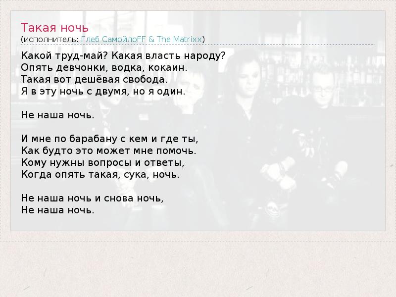 А как ты думаешь, о чем песня "Такая ночь" ?