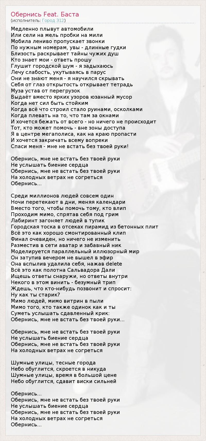 ГлавнаяИсполнителиГород 312Обернись Feat. Баста