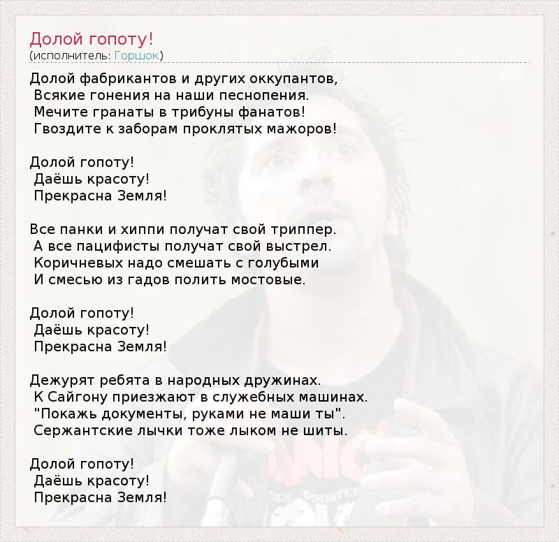 ГлавнаяИсполнителиГоршокДолой гопоту!