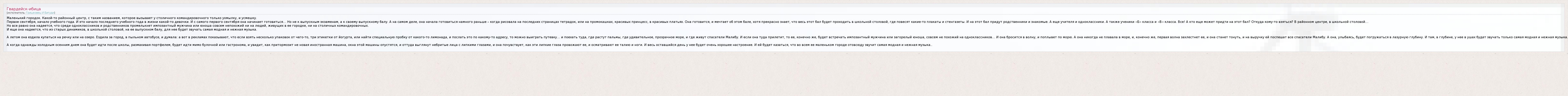 And when one cold autumn day she will go after school , waving portfolio will go past the bakery or deli , and see how slow down is not a new foreign car , the windows of the car will go down , and from there look out unshaven face with sticky eyes, and she feels these sticky eyes followed her , and examine her waist and legs. And the rest of the day she will have a very good mood . And it would seem that in all its small town anywhere sounds the most fashionable and gentle music ..