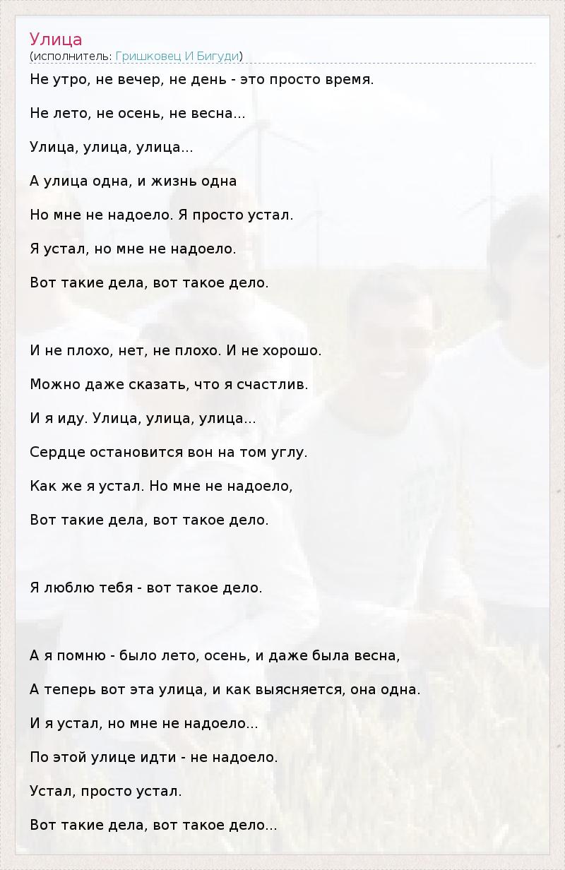 На этом альбоме вокальная манера Гришковца изменилась. Он подает свои высказывания другим тембром, более мелодичным. На альбоме имеется перевес в сторону акустического звучания, в его записи принял участие струнный квартет и другие приглашенные музыканты.