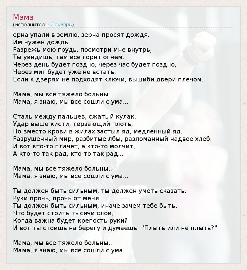 А как ты думаешь, о чем песня "Мама" ?