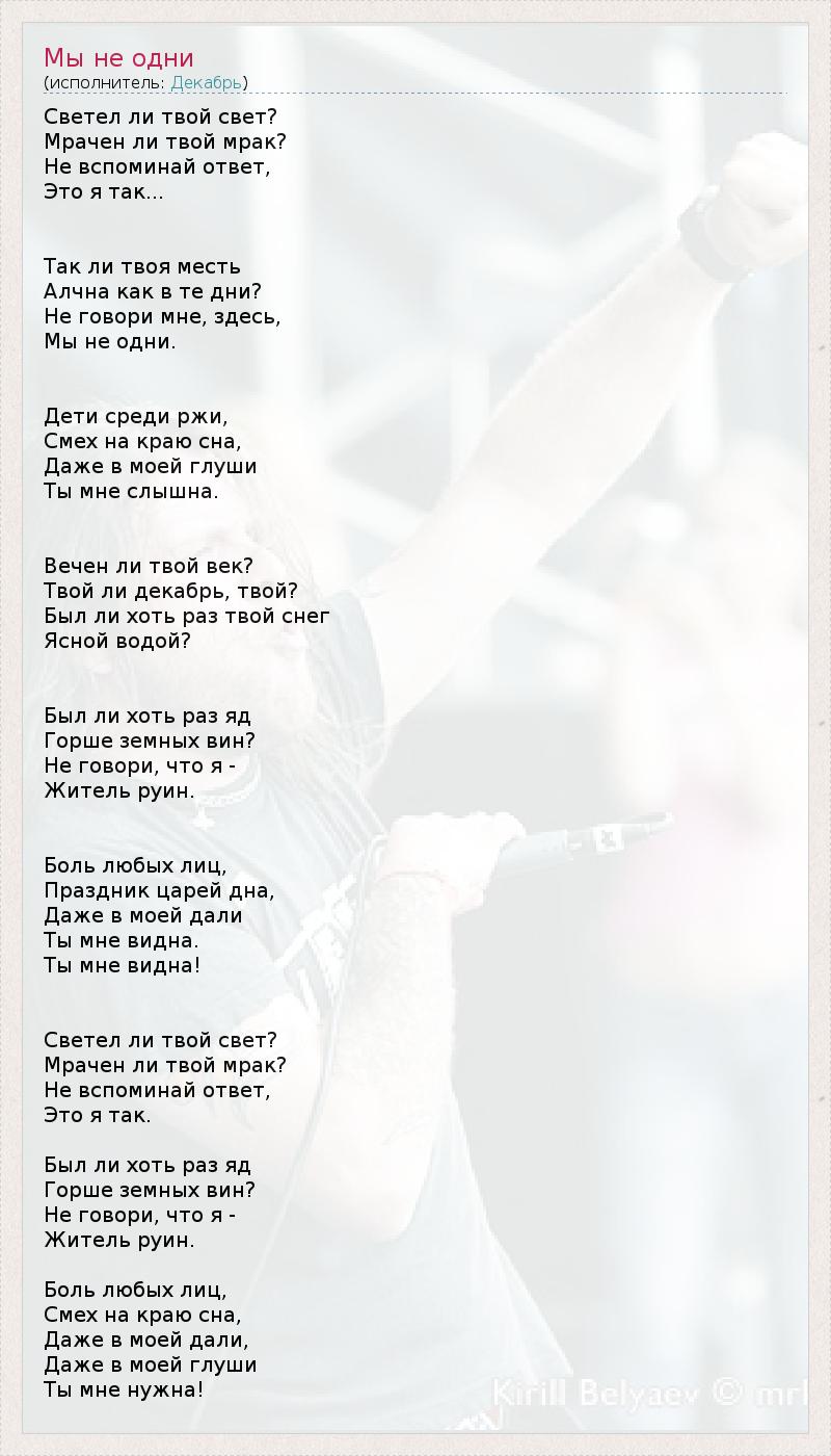 А как ты думаешь, о чем песня "Мы не одни" ?