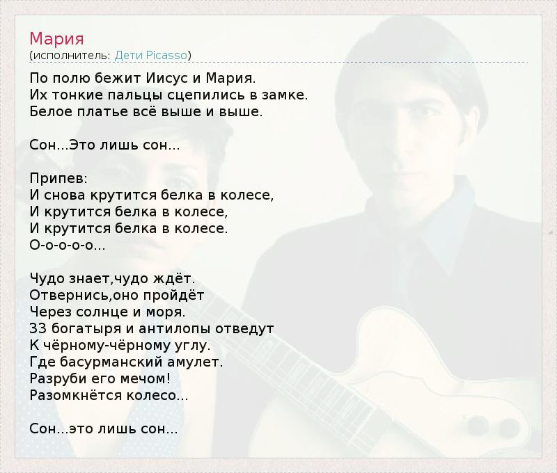Это интересно:Группа Дети Picasso - вероятно, самая благородная группа российской клубной сцены, пишут самые авторитетные печатные издания. Они выпустили 3 абсолютно разных альбома: в стиле рокопопс (Месяц улыбок), в стиле этно-гранж (Этнические эксперименты) и лучший, по признанию многих критиков, русскоязычный рок-альбом 2006 года (Глубина). Дети Picasso успели выступить с Depeche Mode и Massive Attack в Олимпийском. В 2002... продолжение