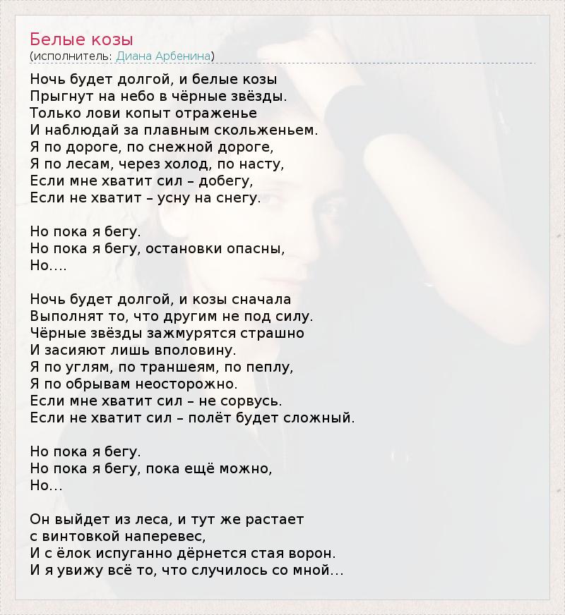 Это интересно:Диана Арбенина родилась в 1974 году в небольшом белорусском городе Воложин, что на границе с Польшей. А чуть позже родители-журналисты увезли трехлетнюю Диану на Крайний Север России: будучи увлеченными своей профессией, они не сидели на месте, переезжая в поселки Чукотки и Колымы. Там Диана получала как общее, так и музыкальное образование.... продолжение