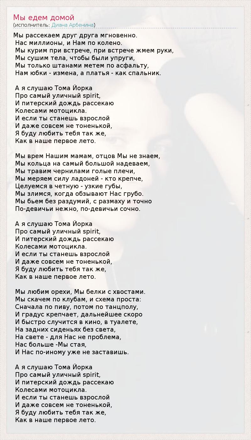 А как ты думаешь, о чем песня "Мы едем домой" ?