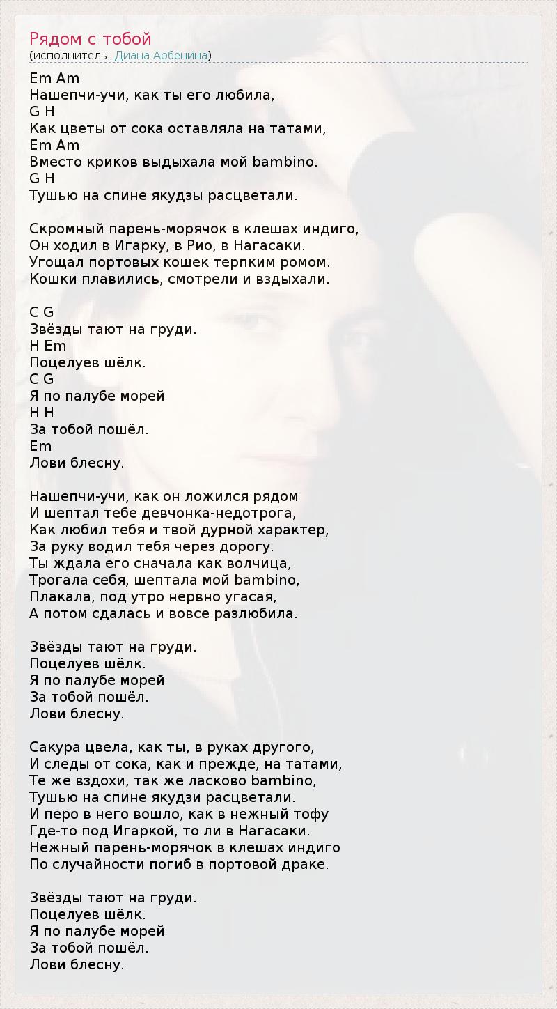 А как ты думаешь, о чем песня "Рядом с тобой" ?