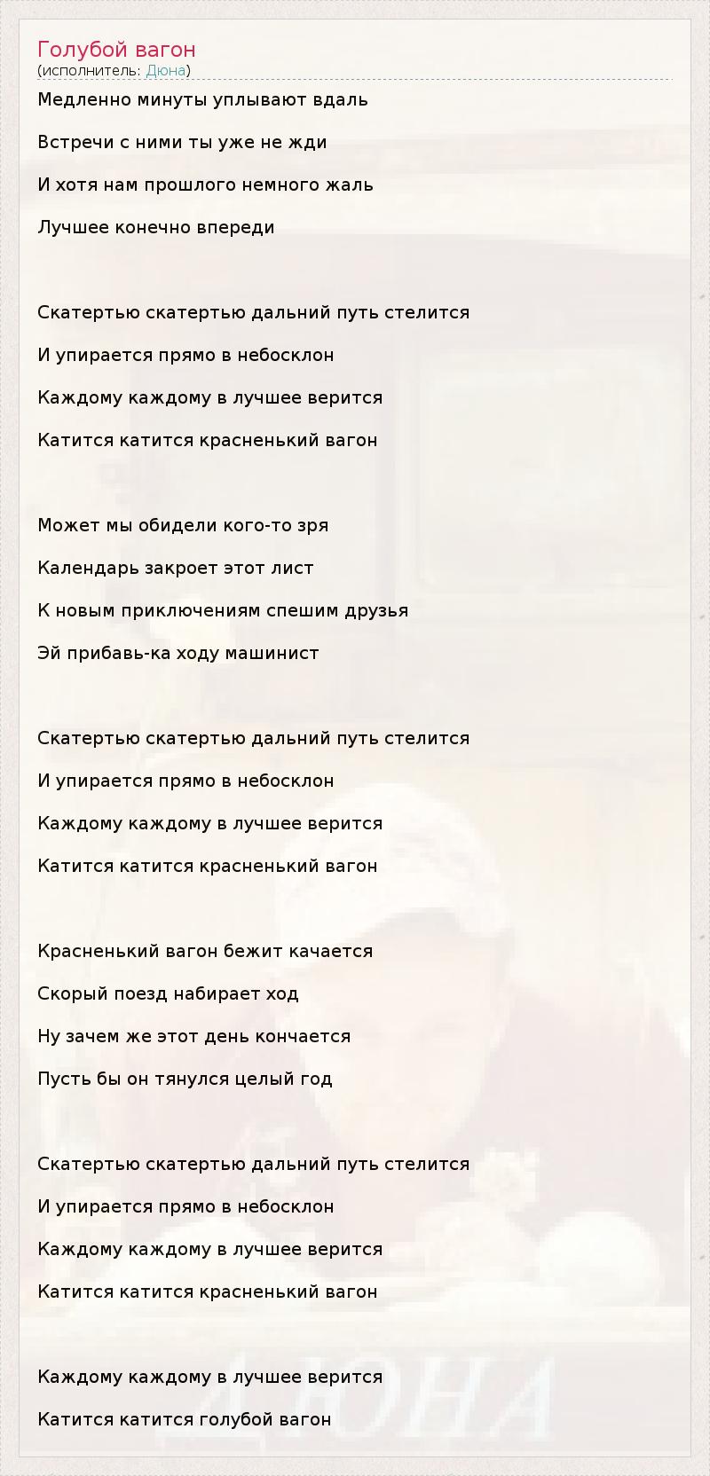 ГлавнаяИсполнителиДюнаГолубой вагон
