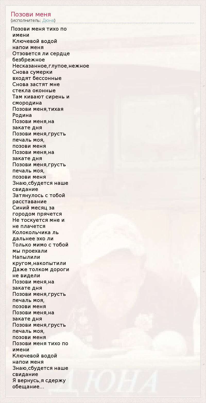 Позови меня тихо по