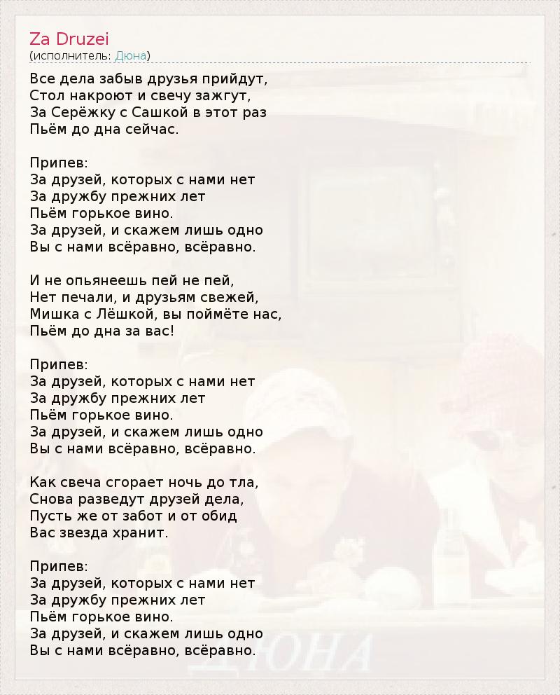 А как ты думаешь, о чем песня "Za Druzei" ?