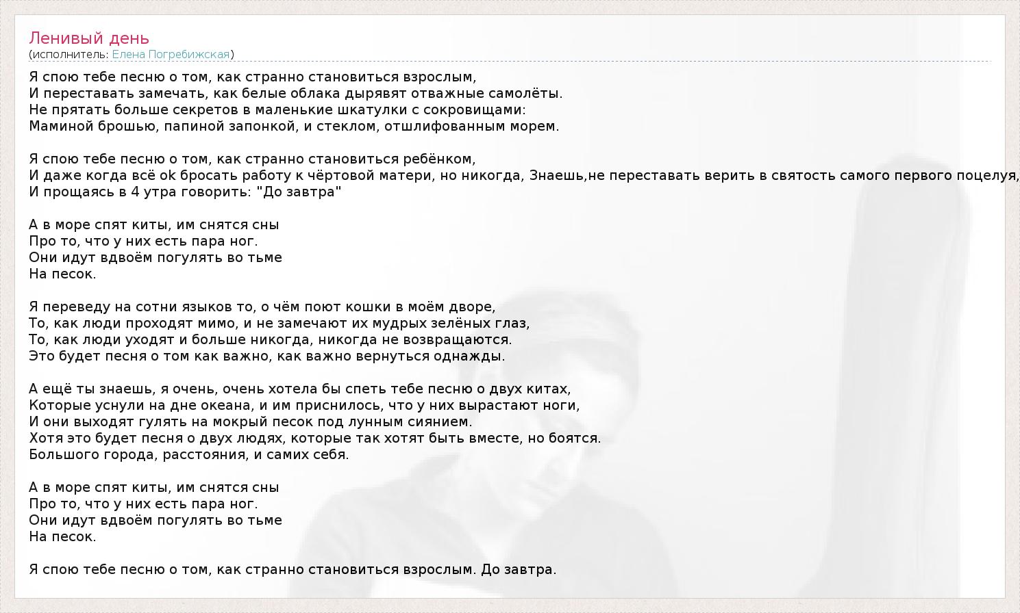 А как ты думаешь, о чем песня "Ленивый день" ?