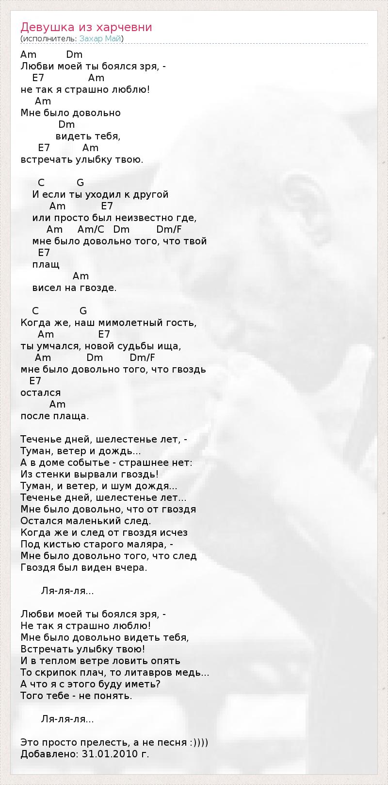 А как ты думаешь, о чем песня "Девушка из харчевни" ?