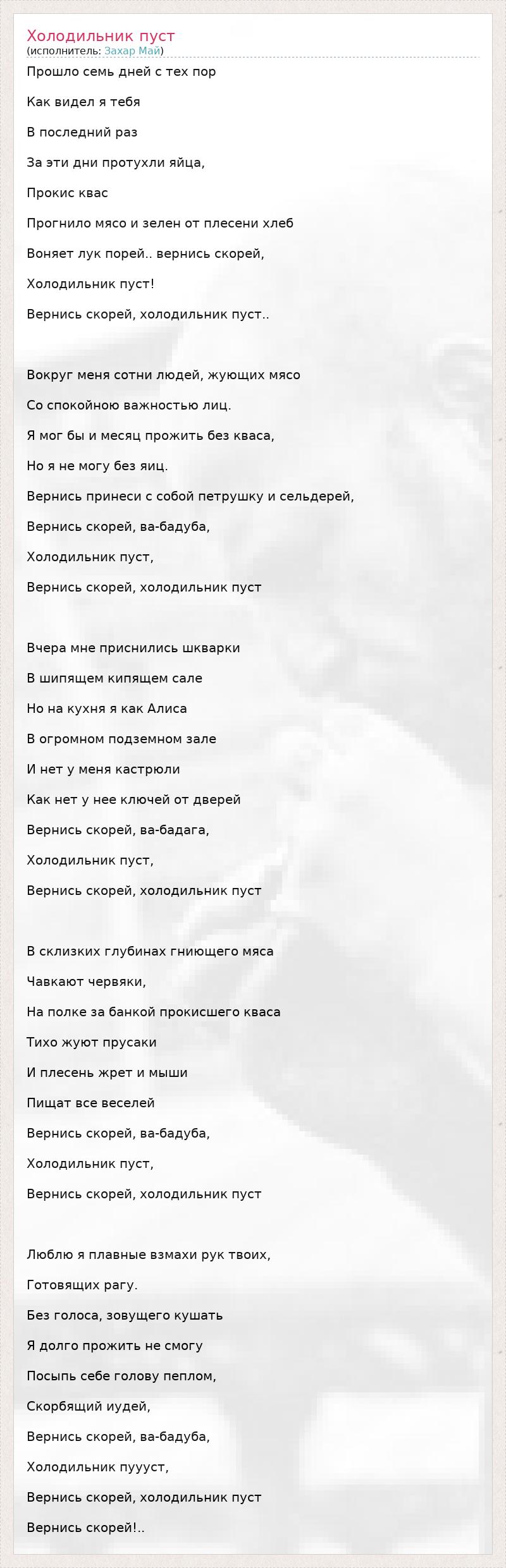ГлавнаяИсполнителиЗахар МайХолодильник пуст