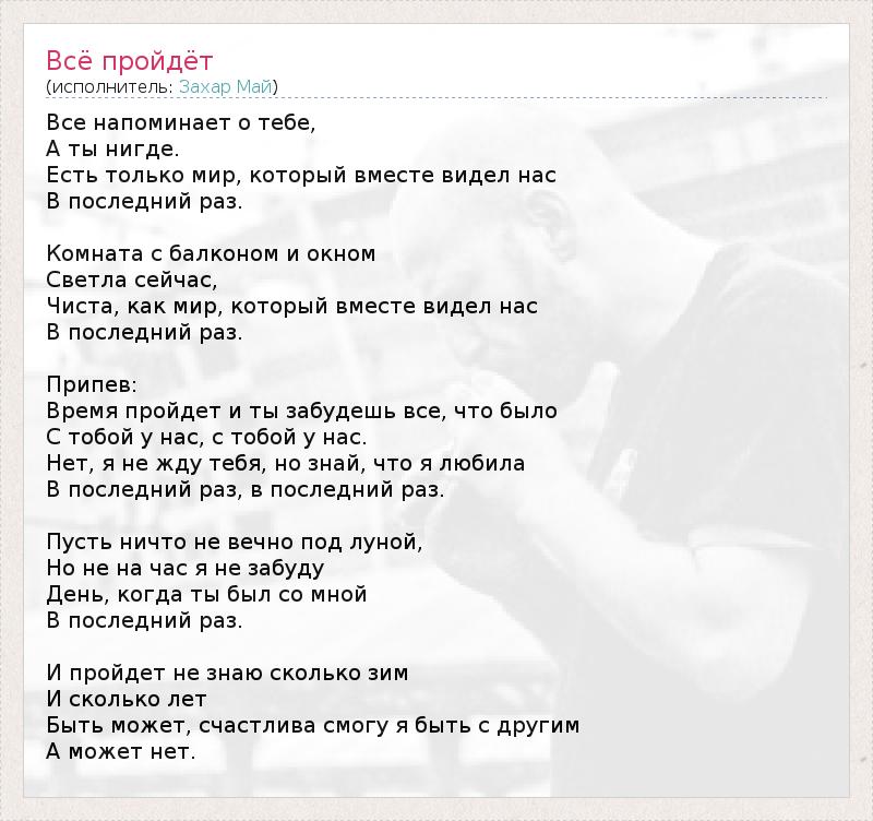 А как ты думаешь, о чем песня "Всё пройдёт" ?
