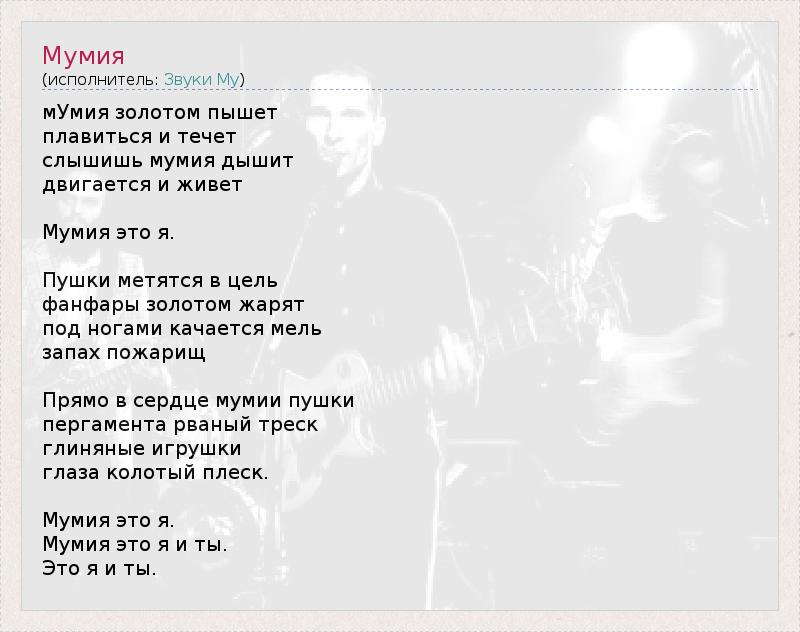 Это интересно:Пётр Мамонов начал интересоваться музыкой и писать стихи ещё в 1960-е годы, в детстве вместе со школьными друзьями основал группу «Экспресс», в которой сам играл на ударных, а иногда — на бас-гитаре и клавишах. Этот коллектив неоднократно выступал на школьных вечерах и домашних концертах, однако серьёзные занятия музыкой начались для Петра только в 1981 году, когда он начал репетировать... продолжение