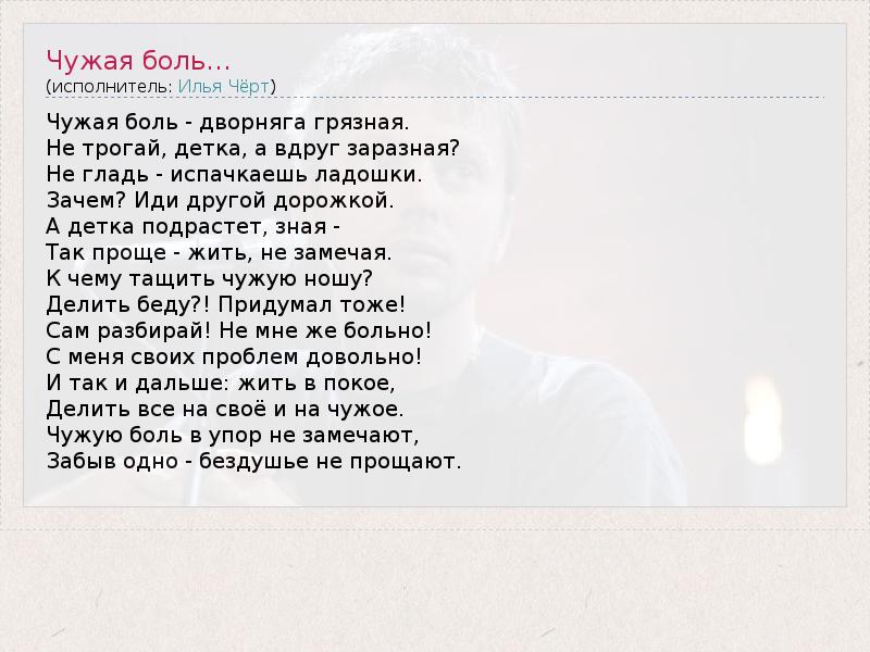 А как ты думаешь, о чем песня "Чужая боль..." ?