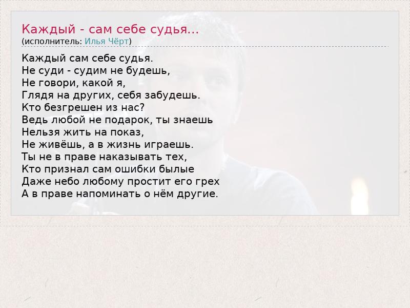 ГлавнаяИсполнителиИлья ЧёртКаждый - сам себе судья...
