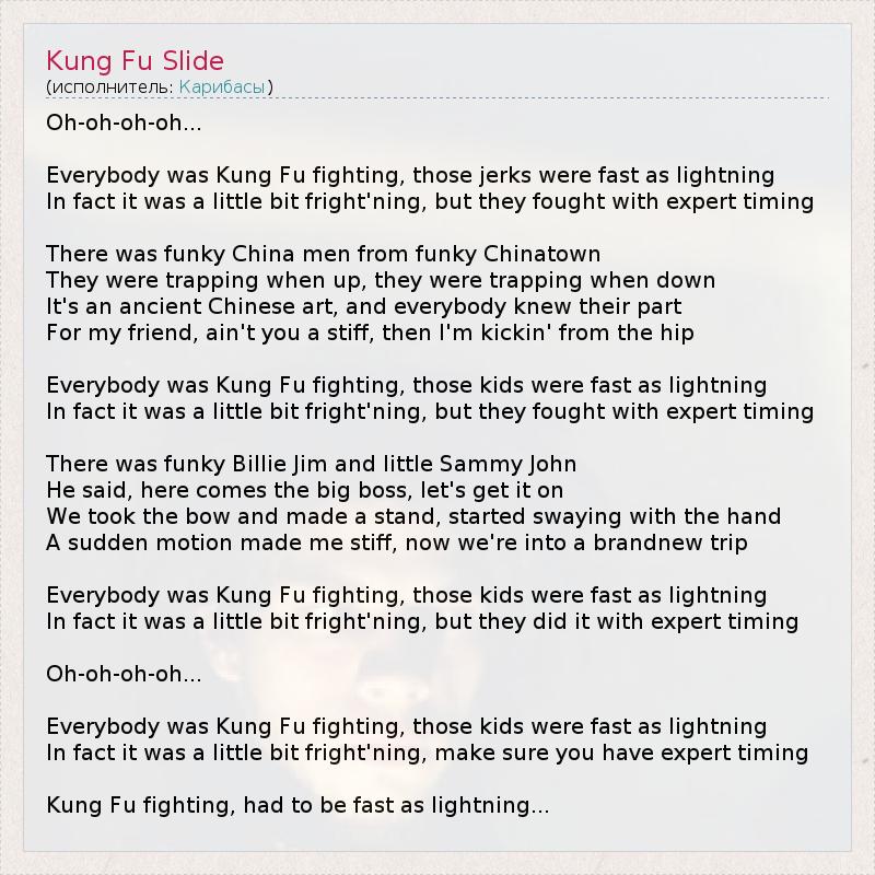 А как ты думаешь, о чем песня "Kung Fu Slide" ?