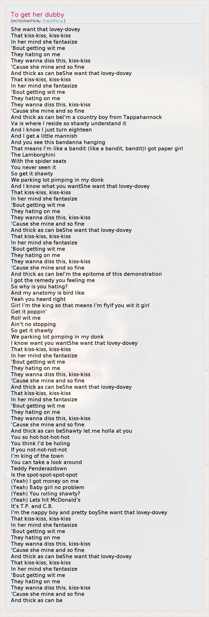 А как ты думаешь, о чем песня "To get her dubby" ?